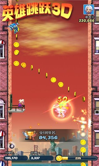 《英雄跳跃3D》是一款极具趣味性的跑酷类手机游戏,采用竖屏操作模式,玩家将控制英雄进行跳跃冒险。在游戏中,玩家需要小心收集金币,这些金币可以用来兑换各种道具,帮助玩家更好地应对挑战。游戏画面萌萌哒,规则简单易懂,但大量的障碍物需要玩家灵活躲避。无论是新手还是老玩家,都能在这款游戏中找到乐趣。快来下载《英雄跳跃3D》,体验一场充满刺激与欢乐的跑酷之旅吧!