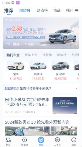 ●每天新增600多条汽车新闻和视频,共有1800多位自媒体人和机构签约。专为你推荐的个性化新闻,帮你全方位了解汽车。