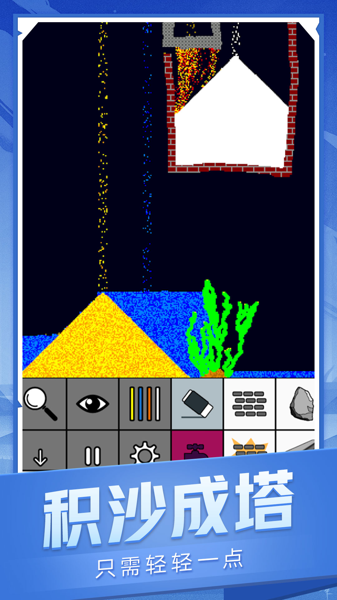 游戏收录了水、火、油、火药、金属等基础元素,还加入了种子、鸟类、蚂蚁等生物系统,总计超过30种可互动物质。每种物质都拥有独特的物理特性,比如火药遇到火焰会引发连锁爆炸,而油类物质会漂浮在水面形成绚丽图案。最新版本还新增了气象系统,玩家可以制造龙卷风或雷暴天气,观察强风对沙粒的侵蚀作用。这些元素之间的互动会产生令人惊叹的视觉效果,让你感受到微观世界的奇妙魅力。