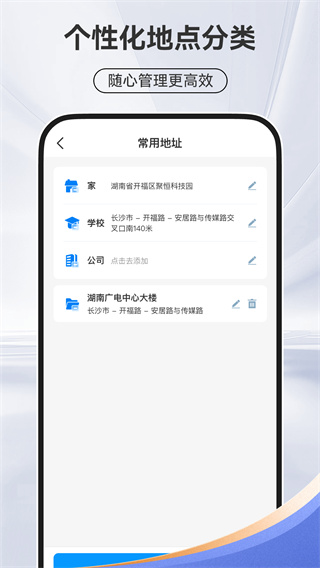 设有地点收藏功能,让用户可以随意添加多个不同时常出行的地点在收藏你,快捷一键查找;用户可以轻松管理常用地点,快速访问,无需重复输入,极大提升了使用效率。