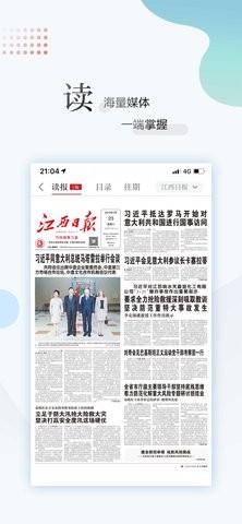 江西新闻客户端APP是一款集新闻阅读、视频直播和生活服务于一体的综合性资讯平台。无论您身处何地,都能通过这款软件获取全球最新动态,涵盖时政、经济、社会、文化等多个领域。除了丰富的图文报道,还提供高清视频和广播内容,满足用户多样化的信息需求。特别注重本地化服务,让江西用户第一时间了解身边事。界面简洁易用,支持个性化推荐,让您轻松掌握感兴趣的内容。无论是上班通勤还是休闲时光,都能随时随地享受便捷的新闻阅读体验。