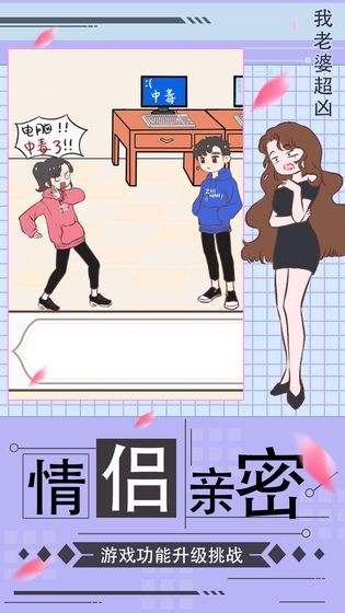 你的任务是及时帮助男主做出正确决策,想出妙招哄老婆开心。游戏通过生动有趣的剧情设计,让玩家在娱乐中学习两性相处之道。如果你有另一半一定会在某些剧情中感同身受。游戏中的很多场景都取材自真实生活,能引发玩家的强烈共鸣。如果你是单身那快来学学女孩子的心思,快速的培养自己的情商。游戏就像一本生动的恋爱教科书,帮助玩家理解异性思维。测测你的恋爱技巧有几分?直男可谓是负分了,你能解救男主吗。