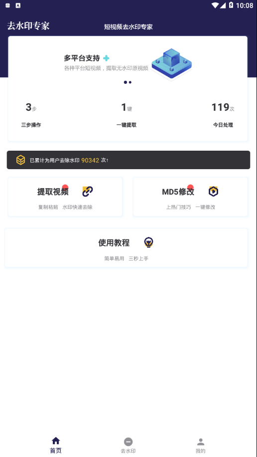 去水印专家app是一款功能强大的视频处理工具,专为解决各类水印问题而设计。无论是短视频平台的水印,还是图片中的标识,都能轻松去除。软件采用智能算法,确保去水印效果自然无痕,同时保持视频画质不受影响。除了基础的去水印功能,还支持视频MD5修改、无水印视频提取等高级操作,满足用户多样化的需求。界面设计简洁直观,操作流程简单易懂,即使是新手也能快速上手。无论是日常分享还是专业剪辑,这款app都能成为您的得力助手。