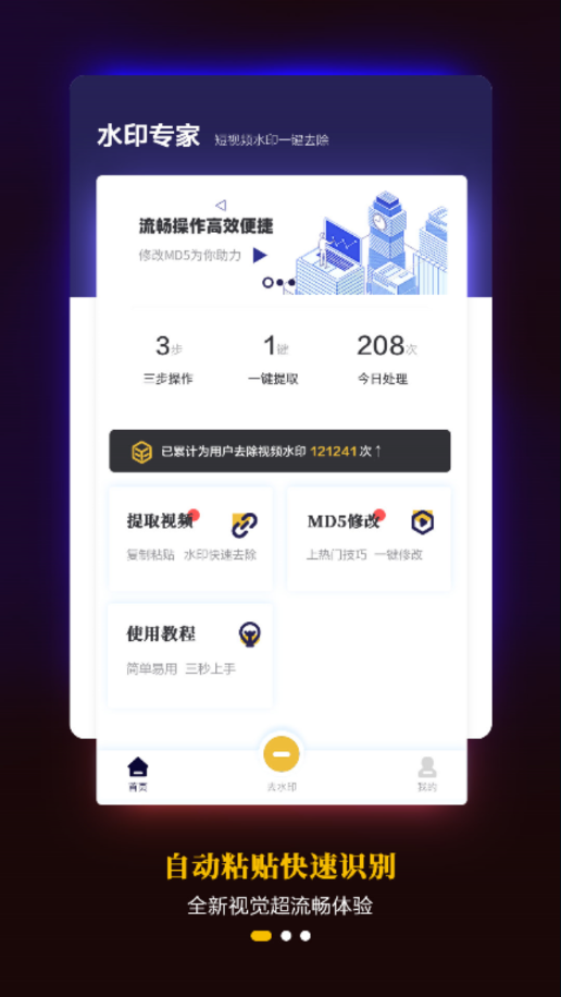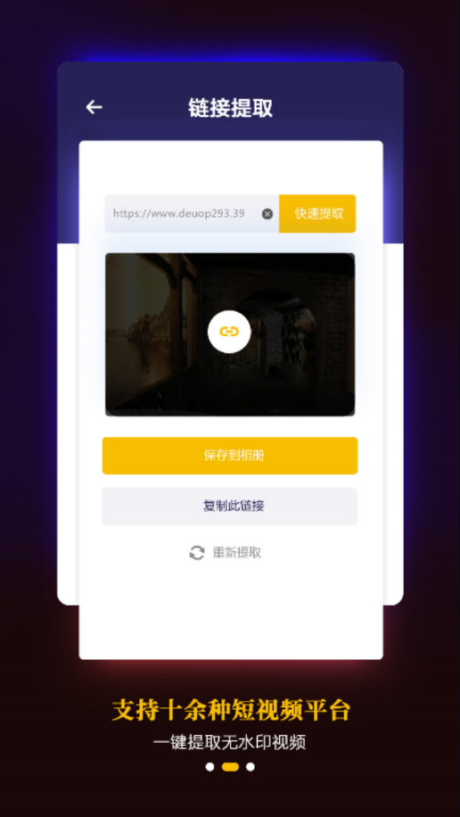 复制视频链接,一键去除视频水印,支持多平台无水印视频提取,消除视频的水印、,美化图片、视频,简单好用的视频去水印工具;采用智能填充技术,去除水印后自动修复背景,确保画面完整自然。支持主流短视频平台超过30种水印样式识别,满足不同用户的去水印需求。