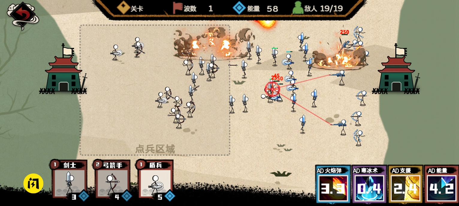 在战场上,你需要精心制定战术。布置你的火柴人,控制他们的行动,选择最佳的时机来攻击敌人。注意保留预备队应对突发状况,同时要把握敌方技能冷却期发动总攻。