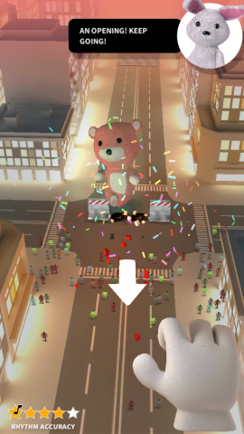 用奇怪的手指操作,可以在音乐世界里自由走动。游戏打破了传统音游的操作模式,让玩家能够随心所欲地探索整个城市舞台。
