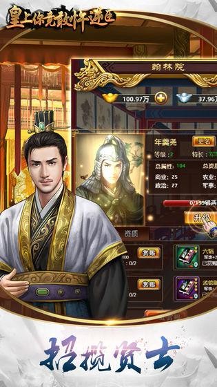 在这里可以找到很多有趣的玩法等待着你的体验,让你在没有仗打的时候也可以体验皇帝才能享受到的荣华富贵!游戏的各类体验都非常的真实~尽情享受当皇帝的快乐,找到一些自己信得过的大臣,交代给他们一些任务,让他们能够帮助你去完成一系列琐碎的小事情~让治国的效率更加强大!实测游戏采用动态天气系统,雨雪雷电会影响农耕收成;独创的"帝王成长线"记录玩家从登基到驾崩的全过程,每次游戏都能解锁不同历史结局。朝堂系统支持自定义官职体系,玩家可提拔寒门子弟或重用皇亲国戚,打造属于自己的权力格局。