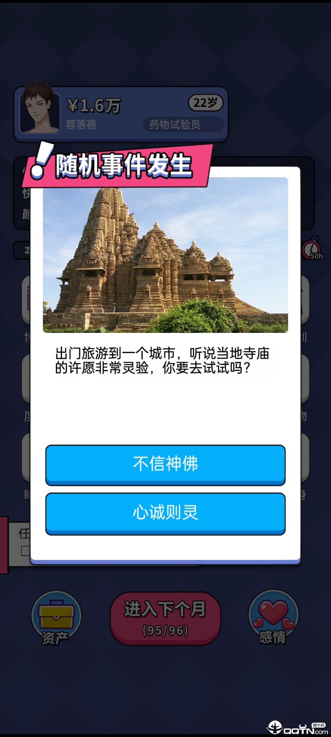 游戏最大的特色在于其丰富的随机事件系统,玩家将面临各种意想不到的奇遇和挑战,需要不断做出关键决策。游戏玩法简单直观,玩家只需根据不同的场景做出选择,就能解锁全新的故事线和发展方向。游戏画面制作精良,每个场景都经过精心设计,充满生活气息。剧情走向充满随机性和偶然性,让每次游戏体验都与众不同。贴近现实的剧情设计带来极强的代入感,让玩家仿佛真的在经历另一种人生。