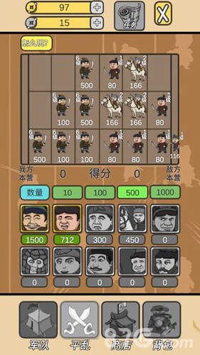诸多兵种谨慎挑选利用,组成强大的军团部队开启征战对抗,所有兵种都会带来不一样的作战效果。从基础的禁卫军到特殊的神机营,每个兵种都有相生相克的属性关系,合理的兵种搭配往往能以少胜多。