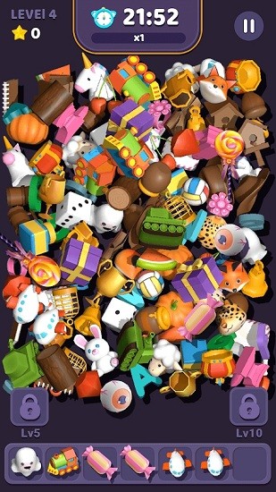三重匹配3d最令人惊艳的亮点在于其创新的3D匹配机制。与传统平面匹配游戏不同,这款游戏让玩家可以自由旋转观察角度,发现隐藏在物品堆中的匹配组合。这种设计不仅增加了游戏的趣味性,也让每次匹配都像是一次小小的视觉冒险。游戏中的物品建模精致可爱,从闪闪发亮的钻石到毛茸茸的泰迪熊,每个物品都经过精心设计,让匹配过程充满惊喜。