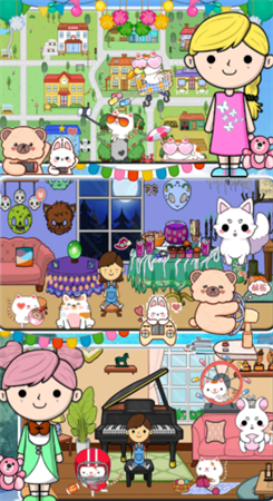 游戏内置了多种不同的玩法,玩家可以自由探索,发现更多隐藏的乐趣。2.玩家可以带领角色在小镇上自由探索,与上百个不同的居民角色互动,体验丰富的社交内容。3.完成任务后可以获得丰厚奖励,整个游戏过程完全免费,无需额外付费。4.通过赚取金币,玩家可以在商城中解锁自己喜欢的角色,体验不同角色带来的独特互动乐趣。