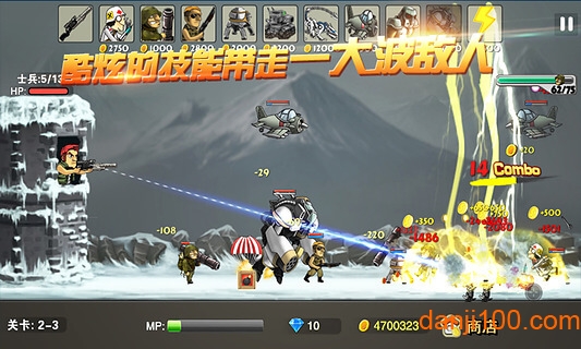 游戏的操作设计简洁而富有深度,玩家可以通过点击屏幕锁定敌人进行射击,同时需要及时部署合适的兵种阻挡敌军攻势。在危急时刻,玩家可以使用特殊技能扭转战局。当能量条蓄满后,角色将进入暴走状态,大幅提升武器的攻击力和射速,让玩家体验横扫千军的快感。