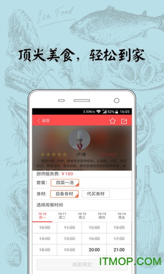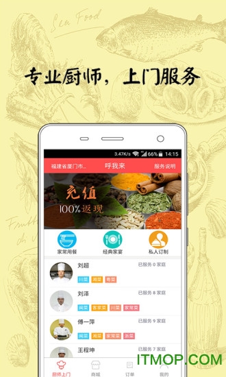 呼我来app是一款颠覆传统餐饮体验的星级厨师上门服务平台。这款创新应用将米其林级别的美食体验带到您的家中,汇集了国内外顶尖烹饪大师资源。无论您想品尝正宗川菜、精致法餐还是创意融合料理,专业厨师都能在您的厨房现场烹制。相比外出就餐,不仅节省30%-50%的费用,还能享受更私密、卫生的用餐环境。特别适合家庭聚会、商务宴请等场合,让您足不出户就能享受五星级酒店的美食盛宴。目前服务已覆盖全国主要城市,用户可通过APP或公众号轻松预约心仪厨师。