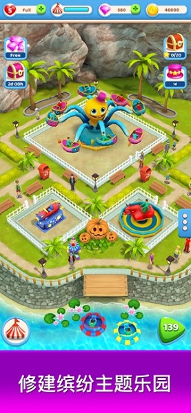 一起来修建最超乎想象的缤纷主题乐园,你准备好了吗?联手商业合作伙伴菲尔,成为最富有的缤纷主题乐园经营者吧!从修建小型游乐设施开始,一步步将公园打造成魅力四射的全新景点。装点缤纷主题乐园的环境,吸引更多游客前来玩耍。游玩,解锁过山车、摩天轮和旋转木马等刺激有趣的游乐设施!修建一个缤纷主题乐园就够了吗?当然不够。前往其他小岛,继续探索更多与众不同的缤纷主题乐园,修建各种各样的游乐设施!修建属于你的花园、游乐设施、乐园等趣味十足的建筑,成为最富有的缤纷主题乐园大亨吧!游戏还提供了丰富的装饰物和主题元素,玩家可以根据自己的喜好,打造独一无二的乐园风格,吸引更多游客前来参观。