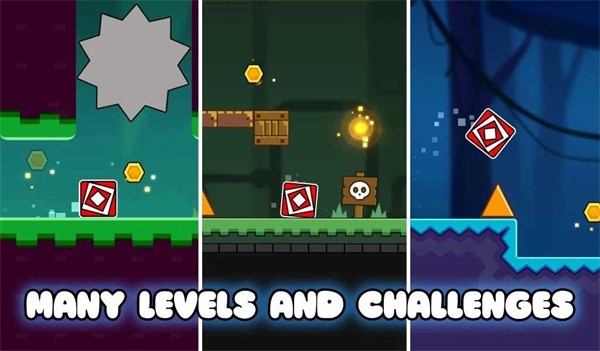 几何冲刺跳跃是一款充满趣味与挑战的横版闯关游戏,它将带领玩家进入一个由几何图形构成的奇妙世界。在这个色彩斑斓的虚拟空间中,各种精心设计的障碍物和陷阱遍布其中,玩家需要灵活操控自己的方块角色,通过精准的跳跃与躲避动作,翻越重重危险。沿途不仅可以收集丰富的道具和金币,还能解锁更多有趣的游戏内容。游戏不仅考验玩家的反应速度和操作技巧,更提供了多种玩法模式,让你在挑战自我的同时享受无尽的乐趣。现在就加入这场刺激的冒险,看看你究竟能闯到第几关吧!