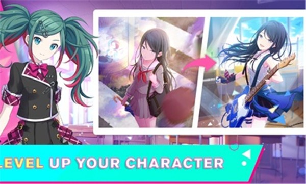 队伍编辑功能,玩家可以通过编辑自己的队伍来改变进行游戏时获得的分数与活动pt获得量。育成界面可以升级自己抽到的角色,右方衣装系统可以更换角色在游戏内3DMV里的衣服;