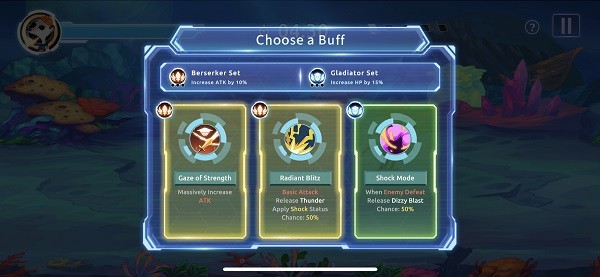每场战斗进行的途中会出现随机的祝福,随着关卡中波次的推进,可以选择各种祝福面对逐渐增强的敌人。这些祝福会带来各种增益效果,帮助玩家应对越来越困难的挑战。