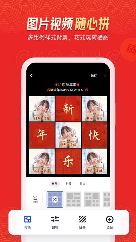 「拼图拼视频」不懂排版?200+版式任您选择,拼图海报模板一键套用,拼接布局轻松又趣味十足。