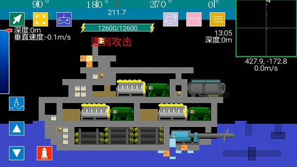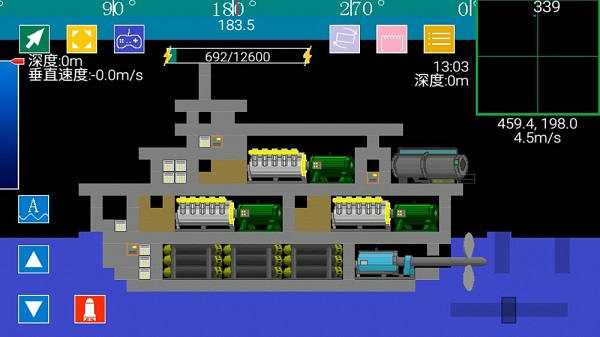 模拟现实潜艇工作原理,严格按照标准数值来操作,所以上浮下潜靠压载水舱的水量来决定;游戏中的每个组件都经过专业物理参数校准,确保模拟效果真实可信。游戏数值满足能量守恒,需要玩家掌握好各种浮力、压力、反作用力等等;这些物理规则会直接影响潜艇的操控性和稳定性。玩家在游戏中能够自由的建造心中所想的潜艇,还可以尝试建造火电厂,热机等!创意模式没有任何限制,完全由玩家发挥想象力来创造各种可能的水上装置。