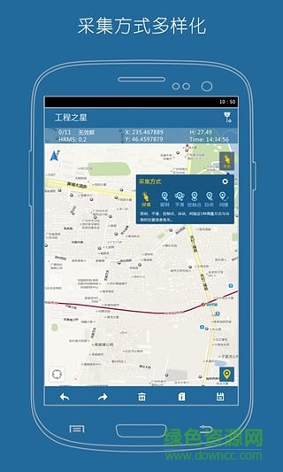 定位信息可以在地图上显示,并能查看经纬度,解状态,PDOP,HRMS,VRMS,卫星数目,时间等;采集定位数据并设置采集条件。支持单点采集、连续采集等多种采集模式,满足不同场景下的测量需求。