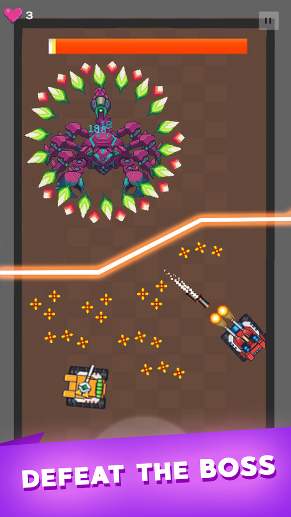 游戏中的BOSS战设计非常用心,每个BOSS都有独特的攻击模式。有些BOSS会发射散弹式的炮弹,玩家需要从弹幕的缝隙中寻找突破机会;有些BOSS则会召唤小兵助战,玩家需要优先解决这些小兵才能集中火力对付BOSS。游戏的操作手感极佳,物理反馈真实,让玩家能够充分体验到驾驶坦克的厚重感和射击的爽快感。丰富的武器系统和升级路线也为游戏增添了更多可玩性,让玩家能够不断追求更强的战斗力。