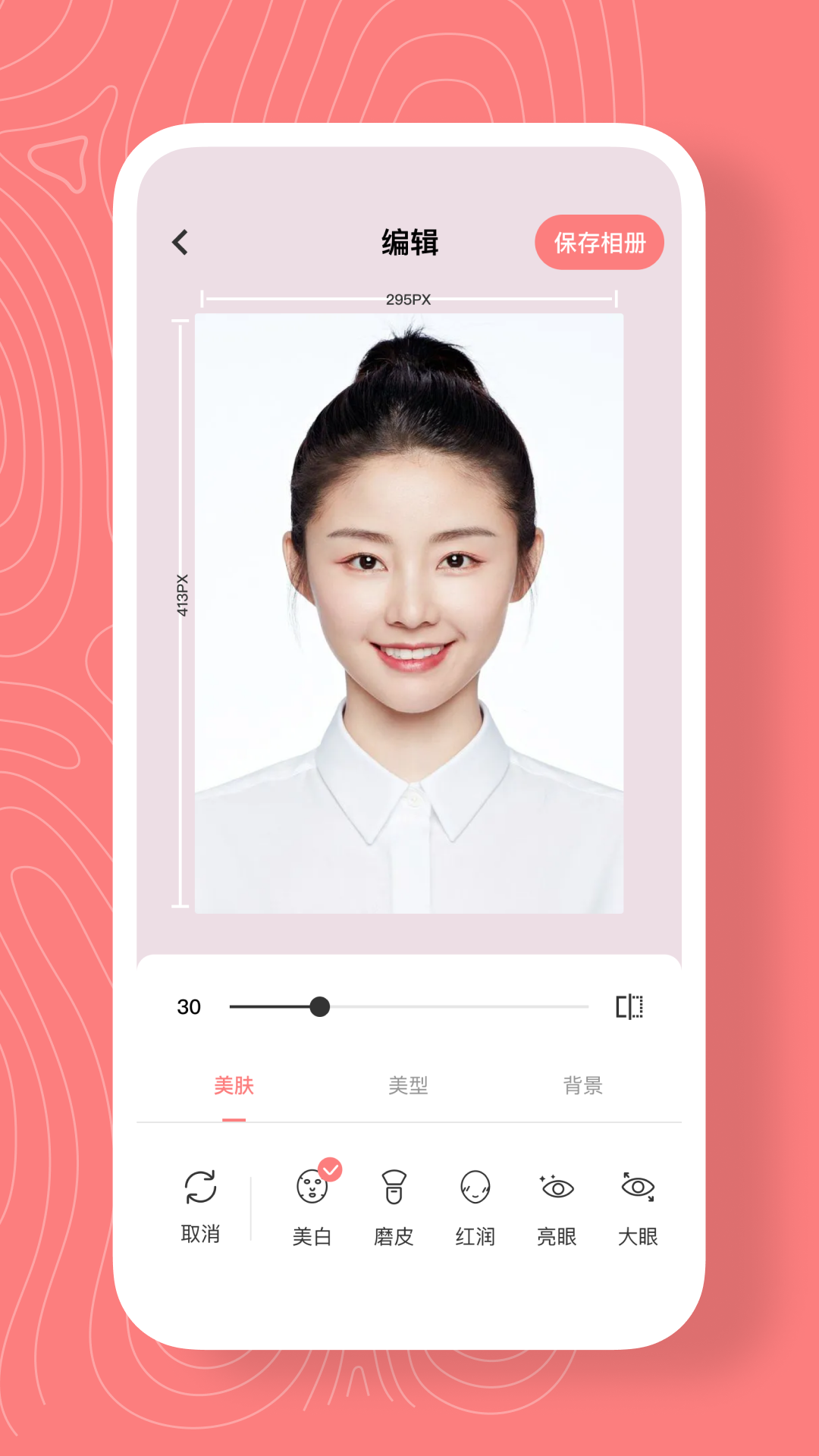 一键美化,快速换底,软件提供美颜滤镜功能,让您的证件照更加精致。同时,支持白、红、蓝三种背景色切换,用户只需点击即可更换背景,轻松制作符合要求的证件照。