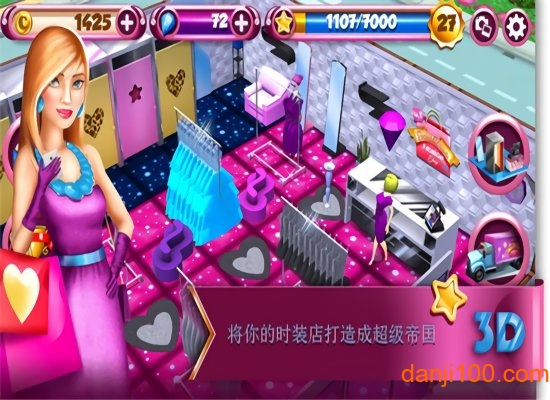 为客户订购衣服,完成任务赚取更多的现金,并升级您的时尚精品店,提升店铺的规模和盈利能力;