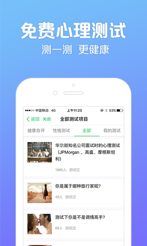心理测试是一款专业且有趣的心理测试app,致力于帮助用户探索内心世界,发现真实的自我。无论你是想了解自己的性格特点、情感状态,还是对职业发展感到迷茫,这款app都能为你提供科学可靠的测试和分析。通过趣味测试、专业测试、情感测试、职业测试等多种功能,你可以更深入地认识自己,并获得有价值的心理指导。