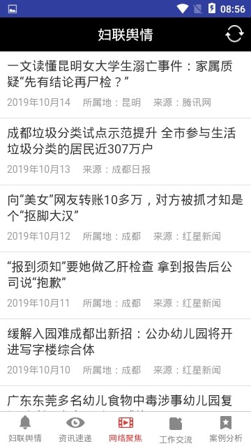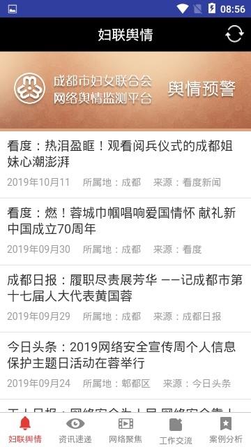 妇联舆情app是一款专为女性用户设计的舆情资讯软件,致力于帮助女性实时掌握社会舆情动态。平台设有专业的舆情分析板块,能够帮助用户快速了解社会热点,增强女性的责任感和使命感,培养新时代女性的独立意识。此外,软件还提供了丰富的舆情战略分析内容,帮助女性更好地维护自身权益。通过这款应用,用户可以获取最新的妇联动态、政策解读以及维权知识,全面提升自身的社会参与能力。无论是关注社会热点,还是学习维权技巧,妇联舆情app都能为用户提供全方位的支持。