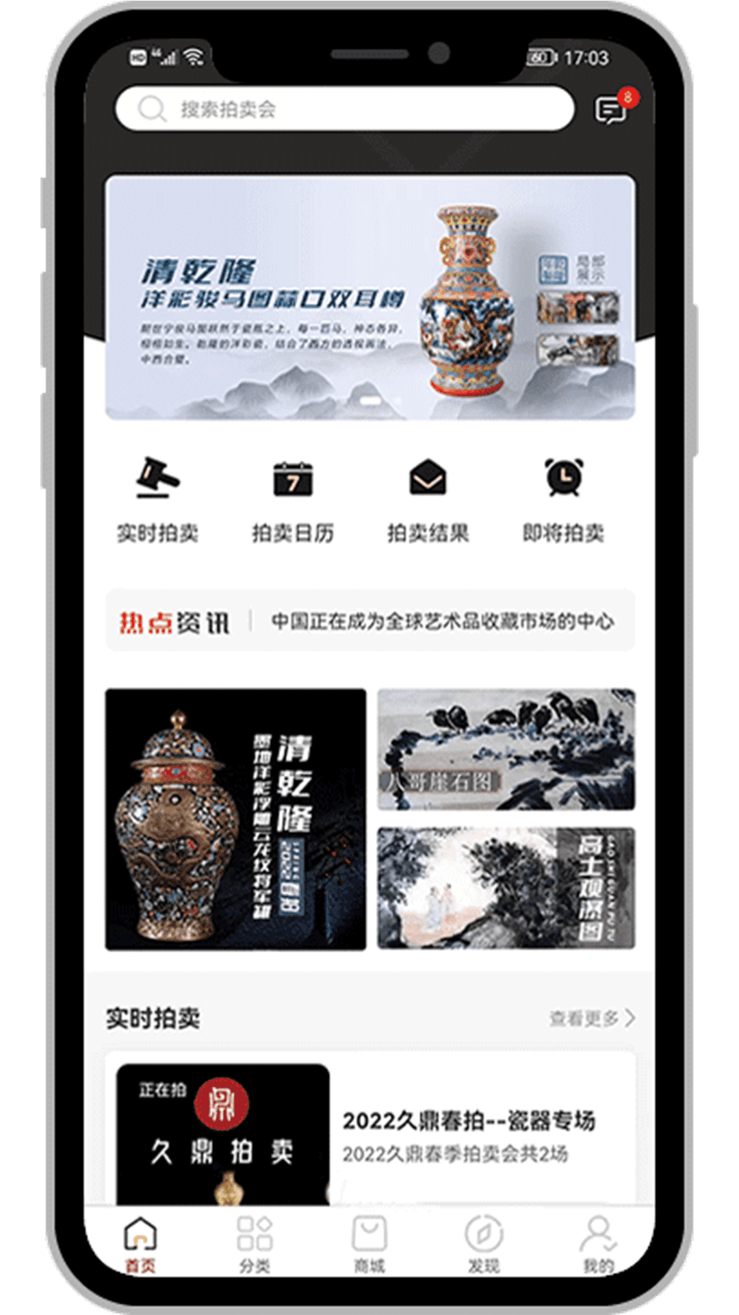 久鼎APP作为专业的艺术藏品在线拍卖平台,巧妙融合线上便捷与线下体验,为用户打造全方位的收藏品交易生态。平台汇聚了字画、珠宝、玉器等高端艺术品类,通过创新的竞拍模式和贴心的服务保障,让每位收藏爱好者都能轻松参与艺术投资。无论是资深藏家还是新手玩家,都能在这里发现心仪藏品,体验从鉴赏到交易的完整闭环,真正实现"艺术触手可及"的收藏理念。