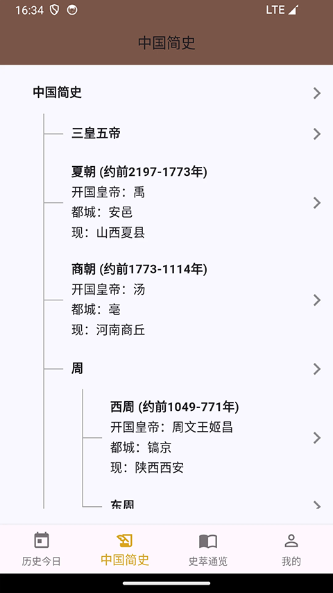 轻松浏览从夏商周到元明清的各个朝代历史,感受中国历史的源远流长。我们特别制作了历代帝王世系表,帮助您理清复杂的继承关系。