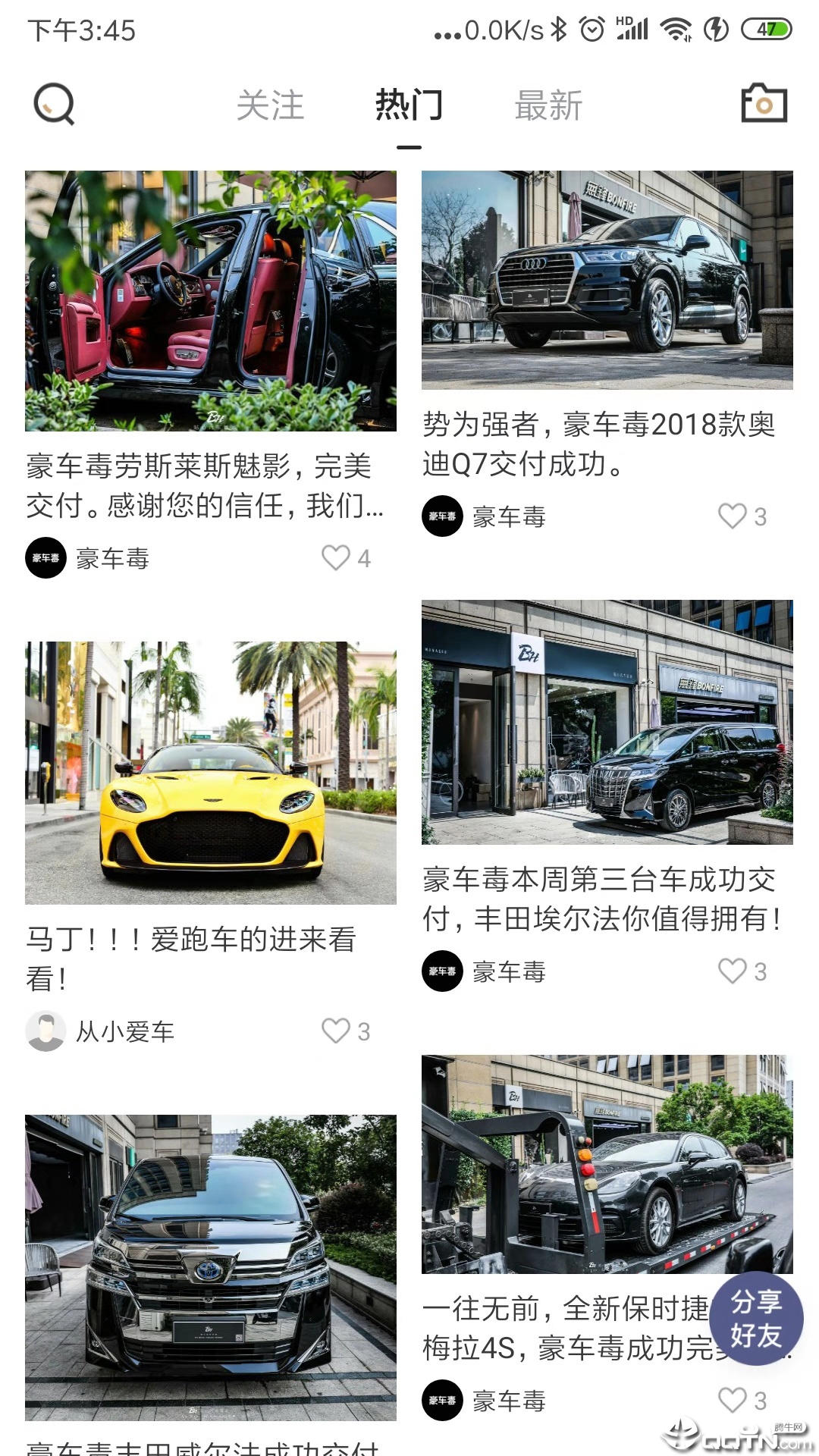 为豪车爱好者精心打造的互动社区,用户可以自由分享爱车美照、改装心得和驾驶体验。所有内容都经过专业团队审核,确保信息真实可靠。在这里,你可以结识志同道合的车友,参与热门话题讨论,甚至有机会参加线下车友聚会。社区定期举办摄影比赛和改装大赛,让您的爱车获得更多展示机会。