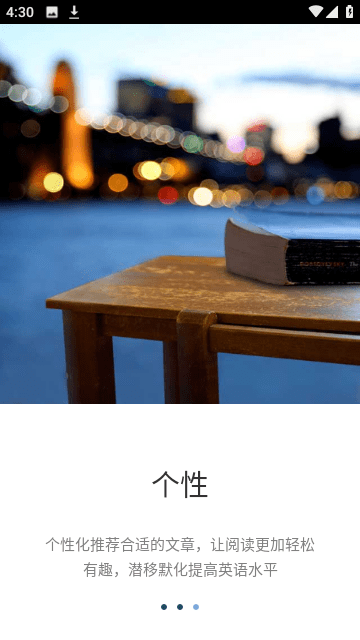 随时获取最纯正的英文资讯,涵盖新闻、生活、经济等各类题材。所有内容均来自权威外媒和出版社,保证语言的地道性。APP内置快速查词功能,轻轻点击即可查询,释义例句一应俱全。查词结果支持发音功能,帮助纠正发音问题。个性化推荐合适的文章内容,让阅读更轻松有趣,提高英语水平。系统会智能分析阅读速度、查词频率等数据,动态调整推荐策略。