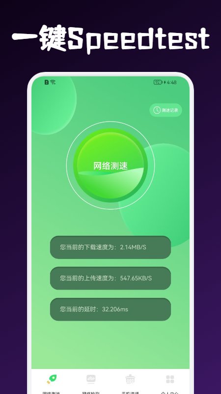 一键speedtest是一款经典且高效的网络测速软件,凭借其简洁的界面和强大的功能,深受用户喜爱。只需一键操作,用户即可在30秒内完成精准的网速测试,实时显示网络延迟、下载速度和上传速度等关键数据。由于采用了全球网络测速技术,无论用户身处何地,测试结果都极为准确。此外,软件体积小巧,占用内存少,运行流畅,不会对手机性能造成负担。通过这款软件,用户不仅可以了解当前的网络状况,还能掌握手机的整体运行情况,帮助优化设备性能。无论是日常使用还是专业需求,一键speedtest都能满足用户的测速需求。