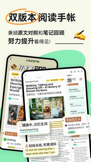 新增了长难句解析功能,帮助用户更好地理解复杂句式结构。同时推出了新年阅读计划活动。