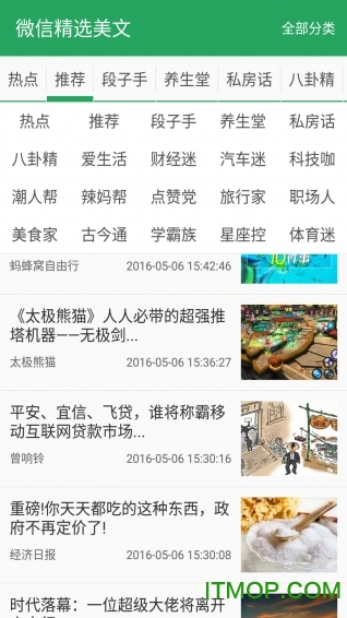 精选选微信朋友圈的当前火热内容,内容每小时更新。通过大数据分析实时追踪网络热点,第一时间为用户推送最新最热的优质文章,让你随时掌握流行趋势。