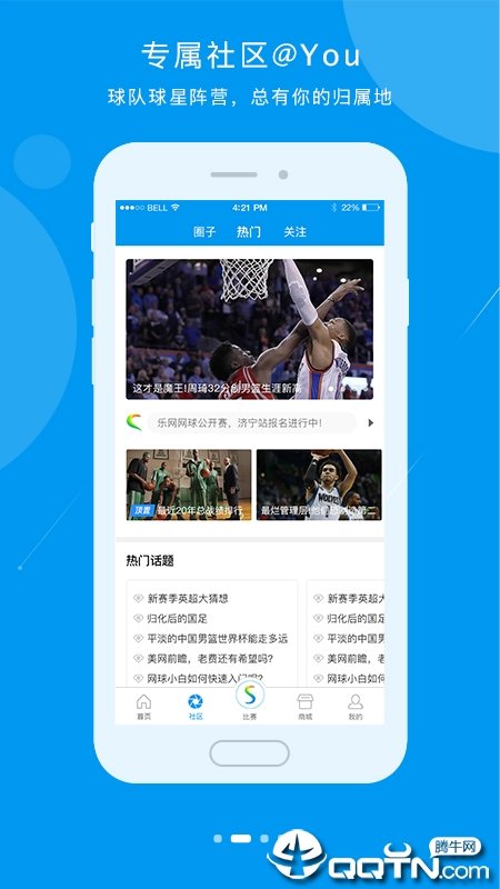 【专属社区@You】平台打造了国内最大的垂直体育社交网络,注册球队超过10万支,日活跃用户达50万人次。除了基础的图文动态分享,还开发了赛事直播、技巧挑战等互动功能。专业的版主团队会定期组织话题讨论和线上活动,营造积极健康的体育交流氛围。用户可以通过"附近球友"功能快速找到志同道合的运动伙伴。
