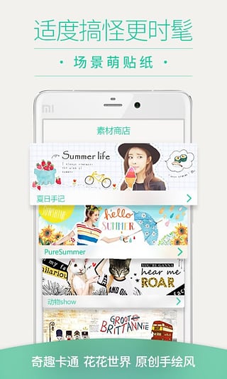 轻松卖萌:提供数百款女生可爱卖萌、靓丽、搞怪等个性装饰,让你的照片更具趣味性;