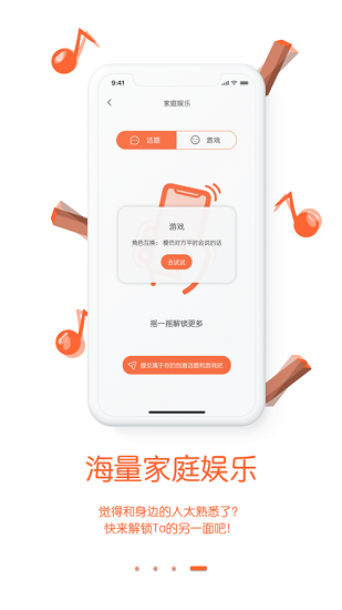 家庭活动/话题推荐:任何感情都是需要经营的,同窝为大家准备了超级有趣的线下游戏,以及随机的聊天话题。从此除了看电视,大眼瞪小眼,还有很多值得一起做的事情哟!无论是周末的家庭聚会,还是平日的闲聊,同窝都能为您提供丰富的活动建议和话题灵感,让家庭成员之间的互动更加有趣和有意义。