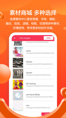免费素材中心里有背景、字体、模板、融合、贴纸、滤镜、相框、纹理等多种素材,尽情使用,带来更多的创作灵感。每周更新最新潮流素材,让您的作品始终保持新鲜感和时尚感。