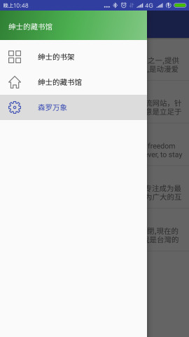 软件界面设计简洁直观,左侧设有侧边栏功能菜单,只需点击左上角的三道杠图标即可展开。在使用阅读功能前,用户需要先安装一个"藏书馆"模块,每个藏书馆都收藏了不同主题或类型的漫画内容,方便用户分类管理自己的收藏。