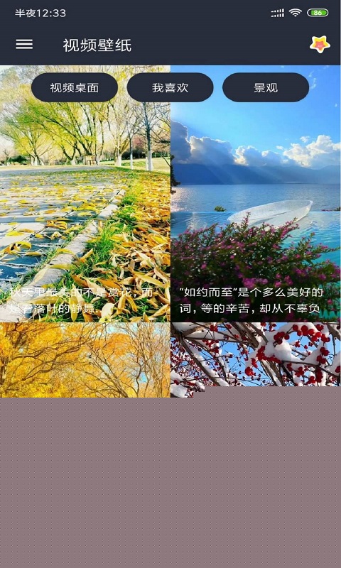安果视频壁纸app将您的手机主屏幕变成充满个性的动态展示空间。不同于传统静态壁纸,这款应用支持将任何视频片段转换为流畅的动态壁纸,无论是记录孩子成长的温馨时刻,还是旅行中拍摄的壮丽风景,都能成为您手机的独特装饰。应用采用智能裁剪技术,可自动适配不同尺寸的屏幕,确保视频内容完美呈现。同时提供专业的视频编辑工具,让您能轻松调整播放速度、添加滤镜效果,打造专属的动态壁纸作品。