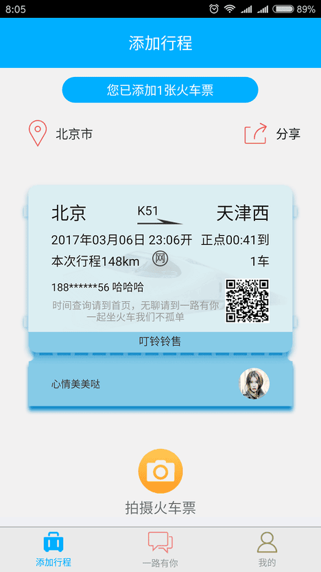 2、简单:火车票或者读取12306订票短信即可添加行程。应用操作简便,用户只需输入火车票信息或读取订票短信,即可快速添加行程,省去繁琐的步骤。