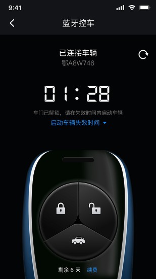 掌握蓝牙钥匙,在此可以使用蓝牙钥匙对车辆门窗、车灯等进行控制。无需实体钥匙,一部手机即可完成所有车辆操作。