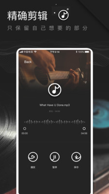 「音频剪辑」采用专业音频引擎,支持波形可视化编辑,可精确设置入点出点,循环试听确保剪辑效果完美无瑕疵。