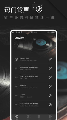 「海量铃声」每日更新全网热搜歌曲TOP100榜单,包含流行、摇滚、电子等20余种音乐风格,更有专业DJ制作的专属混音版本。