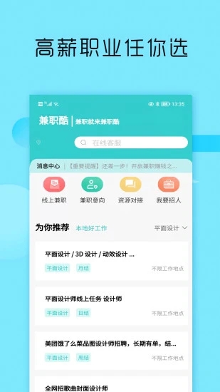 【服务全面】平台覆盖了兼职、实习、寒暑假工、线上兼职等全品类工作机会。特别设立了"新手专区"和"高薪专区",满足不同用户群体的需求。我们还提供简历优化、面试指导等增值服务,全方位助力用户求职成功。