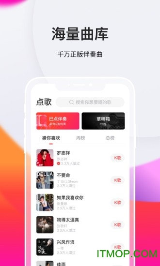 【海量曲库】千万伴奏曲库,你想唱的歌都有,无论是流行音乐、经典老歌还是最新热单,都能在这里找到。
