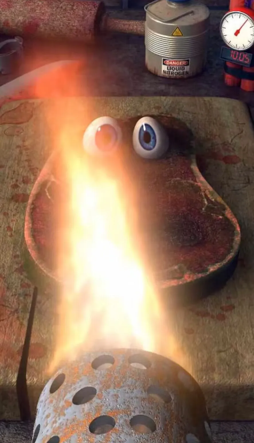 游戏操作简单直观,只需点击"Play"按钮即可开始你的牛排"折磨"之旅。游戏提供了多达十几种厨房工具,从常见的刀具、煎锅到搞笑的锤子、喷火枪,每种工具都能与牛排产生独特的互动效果。玩家可以自由选择工具组合,比如先用锤子敲打牛排,再用煎锅煎烤,观察查理牛排的夸张反应。随着游戏进行,系统会发布各种趣味任务,如让牛排做出特定表情或达到指定熟度,完成任务还能解锁隐藏道具和特殊效果,大大增加了游戏的可玩性。
