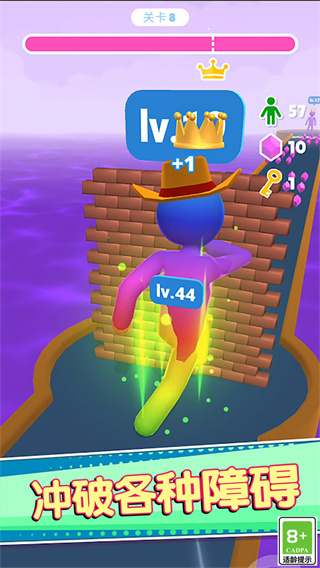 在《狂奔大作战》中,玩家需要操控角色在赛道上快速奔跑,同时收集沿途的物品以提升体积。随着体积的增大,角色的移动速度和能力也会相应增强,但障碍物的难度也会逐步提升,考验玩家的反应与操作技巧。游戏还加入了多种道具和技能系统,玩家可以利用这些道具获得短暂的优势,或通过技能组合创造出独特的通关策略。无论是单人闯关还是多人对战,游戏都能为玩家带来紧张刺激且充满乐趣的体验。